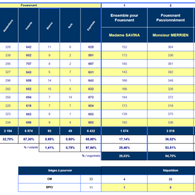 Fouesnant-les Glénan, un patrimoine naturel exceptionnel À la Une Conseil municipal du 21 mars 2026 10h00 Élections municipales – Résultats du 1er tour Camps d’été 2026 Le PLU arrêté au 25 février 2026 Toutes les actualités Menus du restaurant scolaire Associations Jours de marché Comptes-rendus des conseils municipaux Agenda 6Oct28MarTurquiel’Archipel 17Jan18AvrAutant, le temps.l’Archipel 11Mar25MarPrix du public – Les yeux docl’Archipel 17MarRichard III #1l’Archipel 17MarMoment musical : clavecinl’Archipel Tout l'agenda