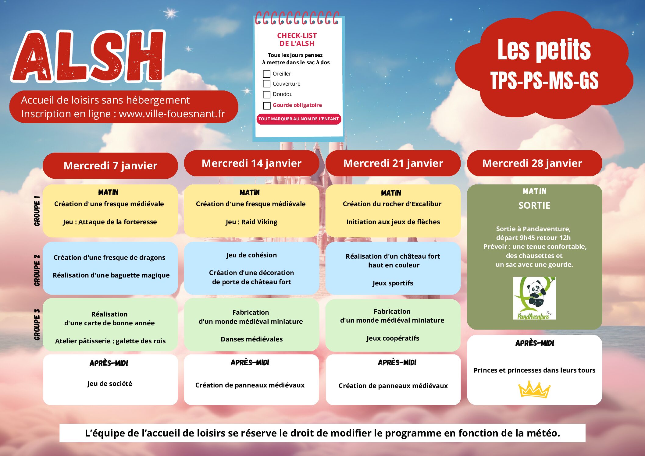 Publié le 6 janvier 2026Les enfants de 3 à 11 ans sont accueillis dans la limite des places disponibles.