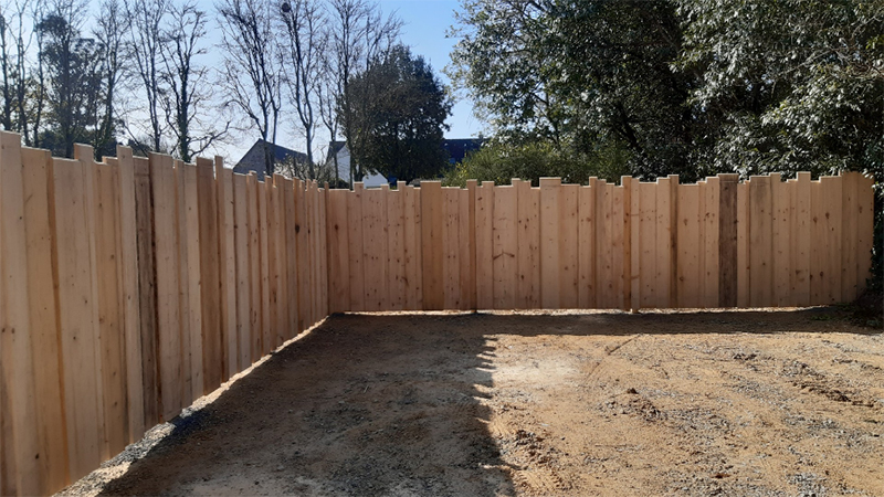Réalisation d’une clôture en bois sur le terrain « Parker » afin de stocker le matériel des manifestations (Blocs en bétons, barrières, déviation, etc.)