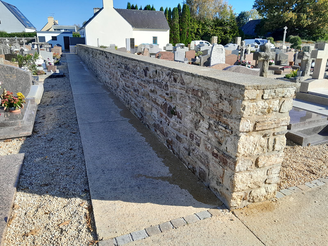 Un muret a été réalisé au funérarium, l’ancienne clôture étant tombée.