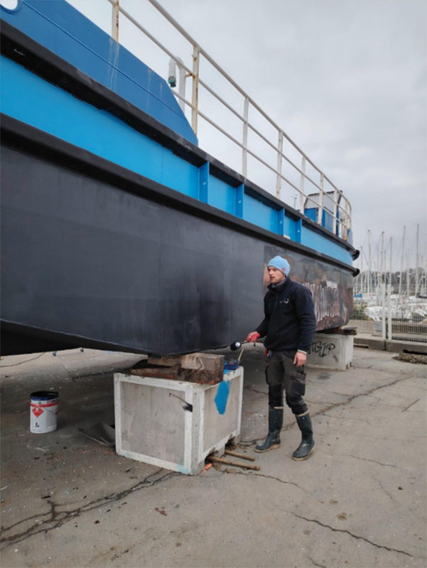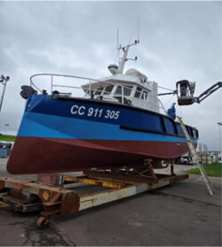 Le bateau a été sorti de l’eau à Lorient afin de procéder à l’entretien mécanique mais aussi hydraulique ainsi que la peinture. Il est resté pour hivernage jusqu’au mois de février.