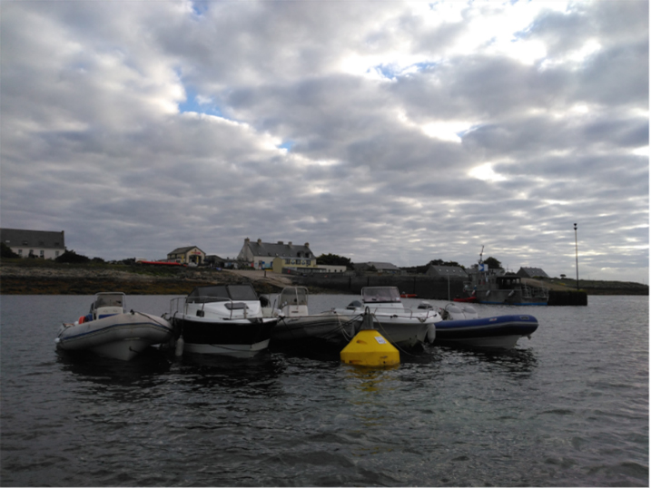 Neuf bouées collectives ont été installées par l’équipe portuaire avec le bateau et la barge, pour la 3ème année consécutive, afin d’éviter le « beachage », devant les plages du Loch, de Guiriden et à la Pie et de permettre aux semi rigides de ne pas jeter l’ancre pour respecter les fonds marins.
