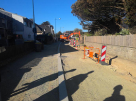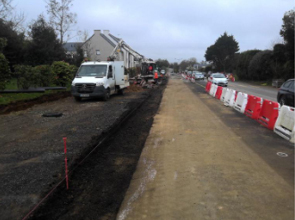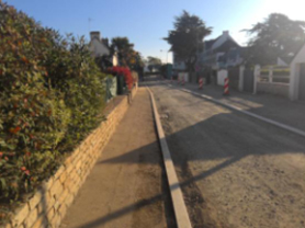 Travaux préparatoires pour la pose des bordures de trottoir.
