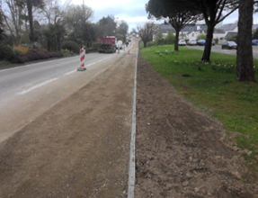 Travaux préparatoires pour la pose des bordures de trottoir + empierrement côté piste.