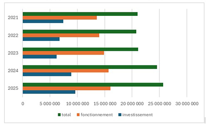 L’évolution du budget communal sur cinq ans :