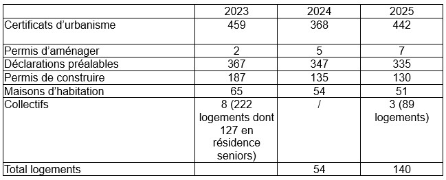 Demandes auxquelles s’ajoutent les demandes d’alignement (290), les certificats de numérotage (290), les certificats de salubrité, de péril (41), les demandes liées aux ERP (10), les demandes de pose d’enseigne (14).