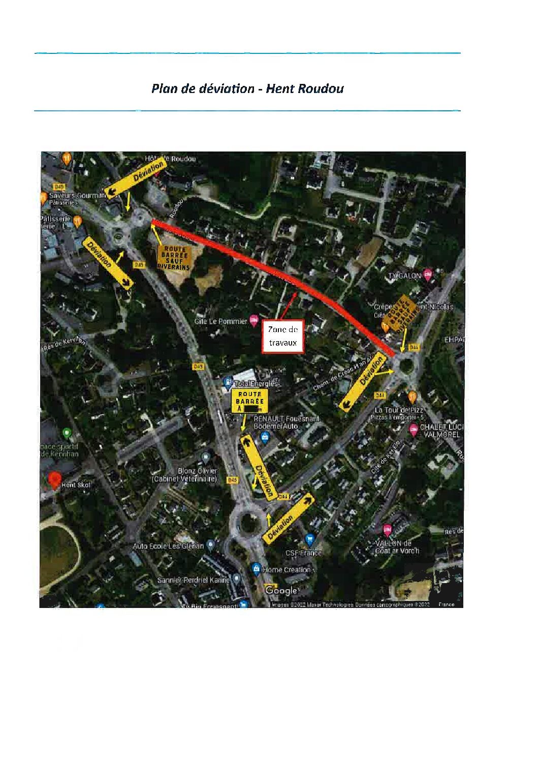 Publié le 30 octobre 2025Les travaux d’aménagement de la route Hent Roudou vont débuter et dureront jusqu’à la fin d’année. Cette route, en raison sa situation géographique et de son positionnement stratégique est un passage privilégié pour un certain nombre d’automobilistes et un point de liaison entre le bourg, la route de Rozambars, la route de Sainte-Anne.
